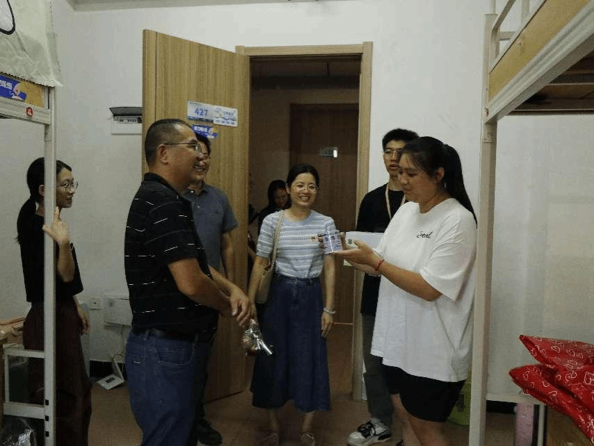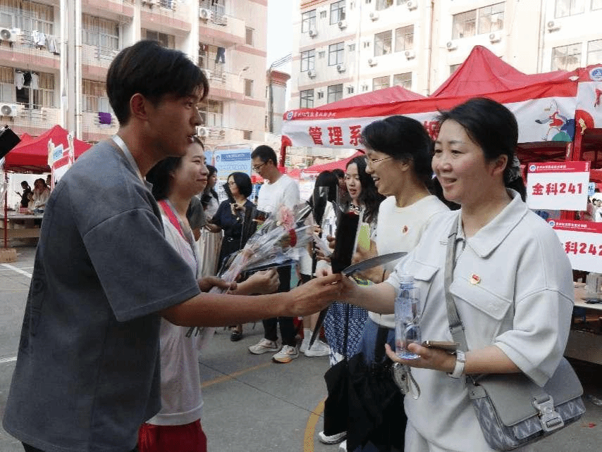 学院党委委员副院长张庆武带领管理系党员老师参与到迎新活动中, 他们走访新生宿舍,与新生们亲切交流,并为新生送上向日葵种子,寓意着新生们在未来的日子里能够像向日葵一样,向着阳光,积极向上,勇敢地追逐自己的梦想。