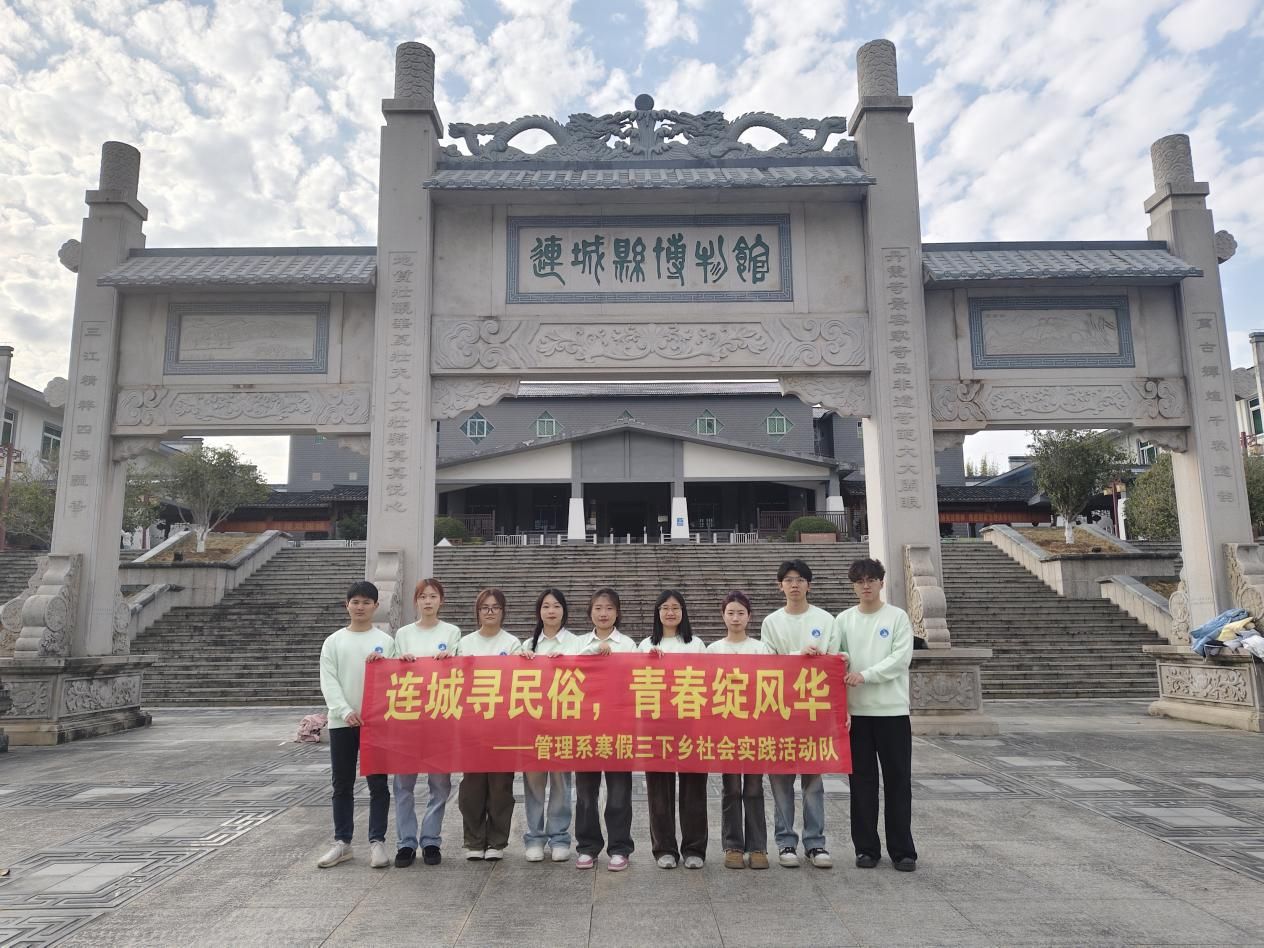 为深入学习贯彻习近平文化思想,培育和践行社会主义核心价值观,同时让同学们走出校园,感受传统文化、锻炼实践能力。管理系于2025年2月14日至16日开展为期三天的“连城寻民俗,青春绽风华”主题寒假社会实践活动。