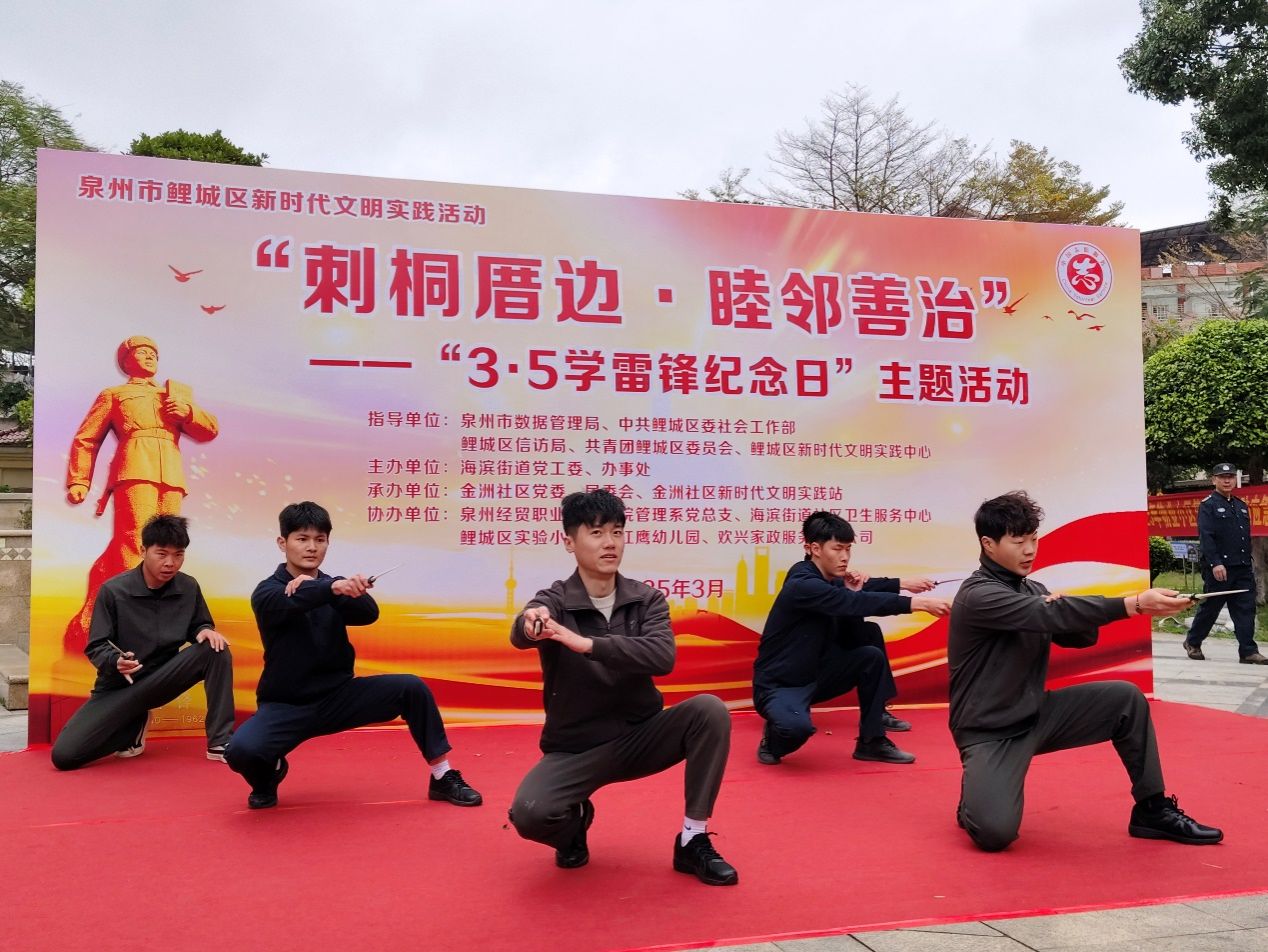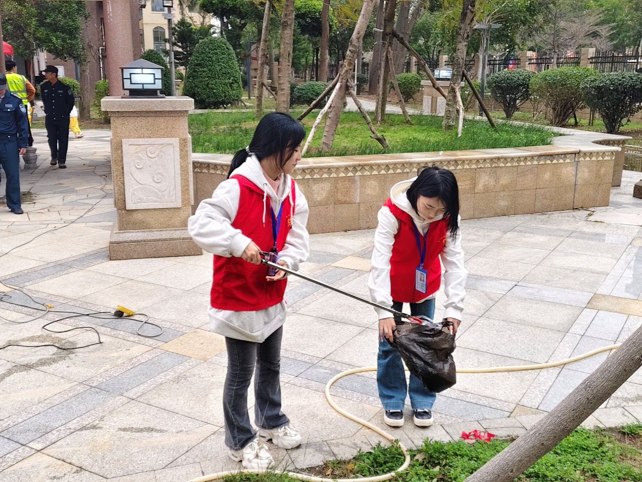 在海滨街道的活动现场,多项惠民服务同步开展。活动现场特别策划文艺汇演,以歌舞等形式弘扬雷锋精神。管理系团总支志愿服务队还组织学生志愿者兵分两路投身实践。一队负责环境美化行动,他们手持清洁工具深入社区街巷,清理卫生死角、规范单车停放。一队通过发放手册、案例讲解等形式,向社区居民普及防诈骗知识,筑牢安全意识。获得了社区居民的一致好评。