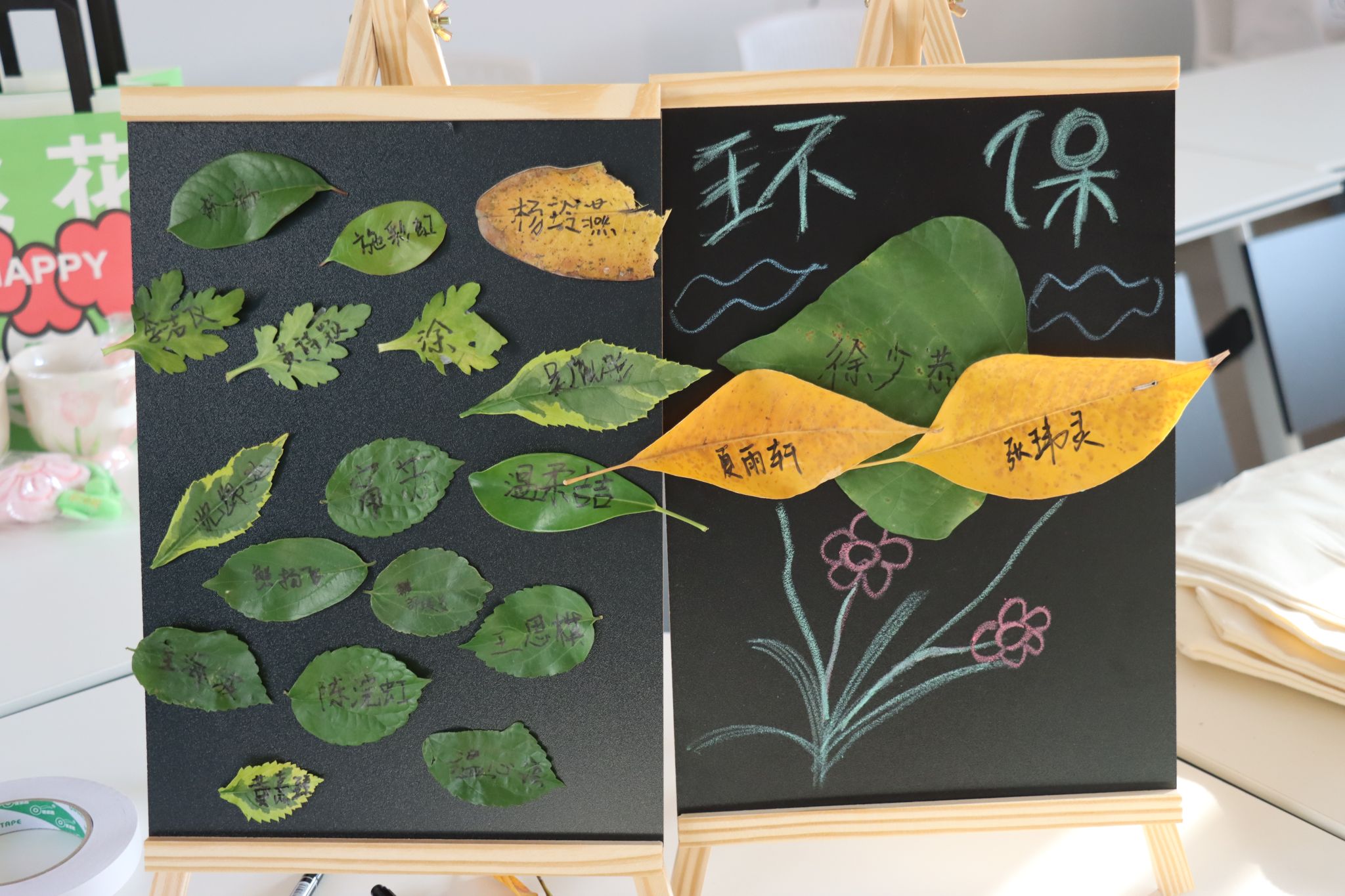 在活动现场的签到环节,同学们手持校园内收集的落叶,写上姓名后粘贴在画板上完成签到。知识分享环节中,主持人介绍活动背景、目的及流程,同学们踊跃分享环保小知识与植物保护的重要性。