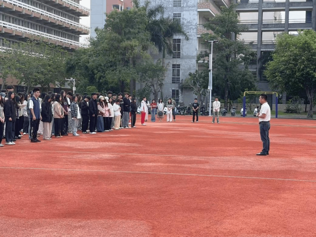 随后,学生科科长吴灵莉以“人人讲安全,共筑校园安全意识”为主题作了讲话。2025年5月12日是第17个全国防灾减灾日。此次讲话以汶川大地震为切入点,从日常的校园生活安全讲起,从排查身边隐患,强化应急能力,关注心理健康,注意人身安全,注意财产安全,注意防火安全,防范电信网络诈骗,注意网络安全问题,提高安全交通意识等九个方面入手,教育同学们校园安全是学校发展的生命线,是师生幸福生活的保障。学校始终将校园安全工作放在首位,本着对学生认真负责的态度,不断完善的安全管理制度和应急预案,定期组织安全演练,如消防演练、地震演练等,提高师生的应急处置能力。同时,还通过校园广播、宣传栏、主题班会等多种形式,广泛宣传安全知识,为同学们营造了浓厚的安全文化氛围。