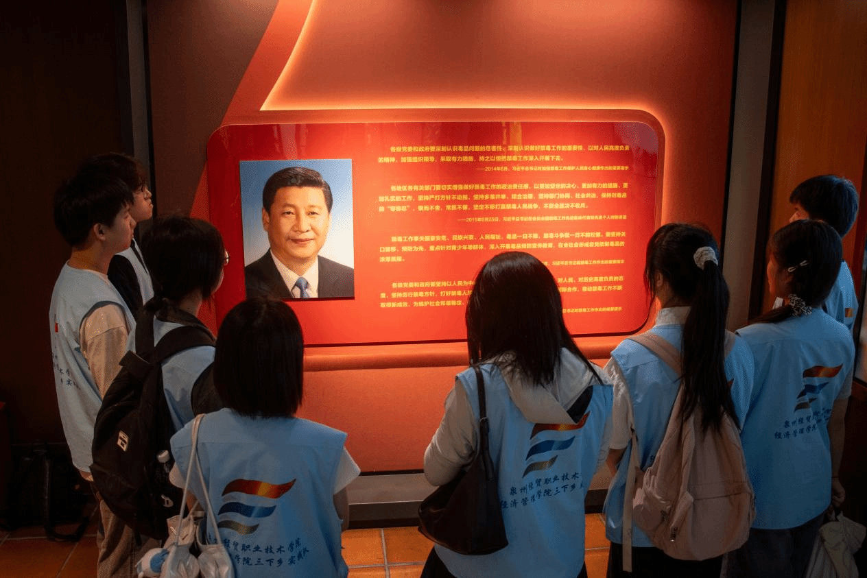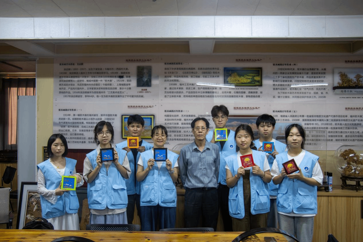 随后参观了福建省非遗博览苑和福州市非物质文化遗产展示馆,志愿者讲解员为团队详细介绍了福州脱胎漆器髹饰技艺、寿山石雕、闽剧等国家级非遗项目。展馆内,习近平总书记曾调研非遗项目的珍贵照片和讲话摘要,让师生们深切感受到国家对非遗保护的高度重视。