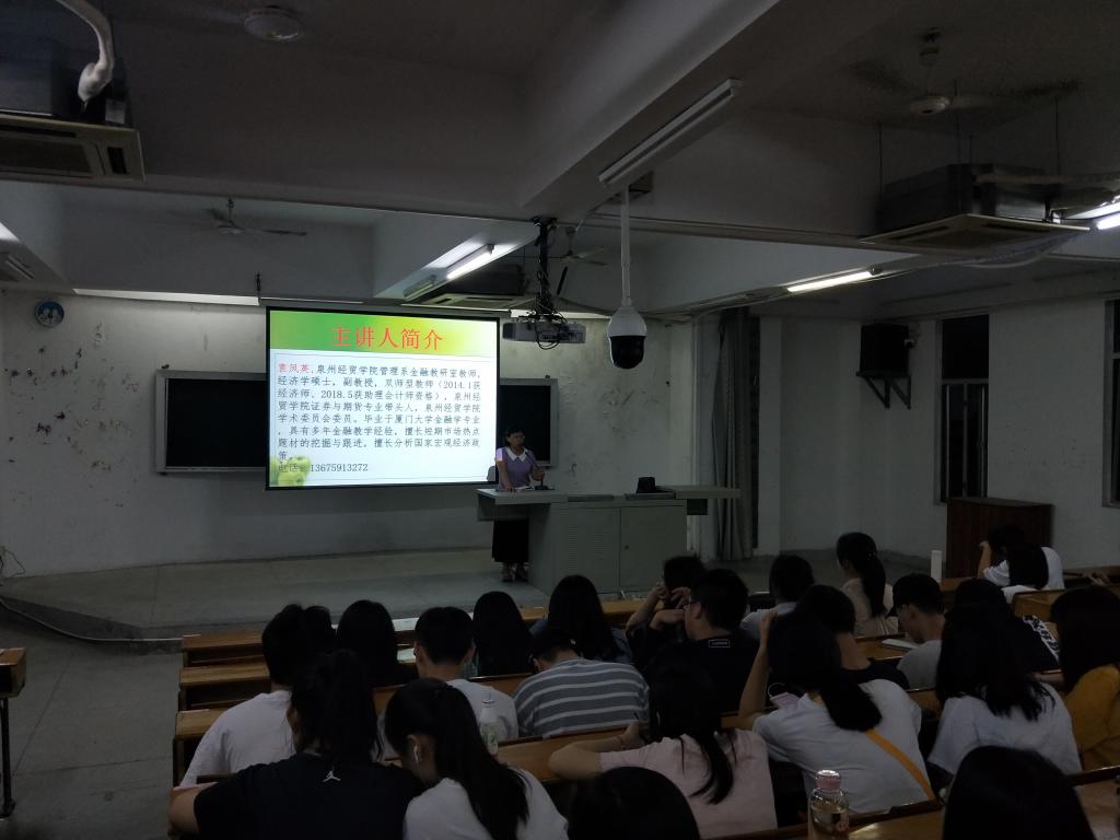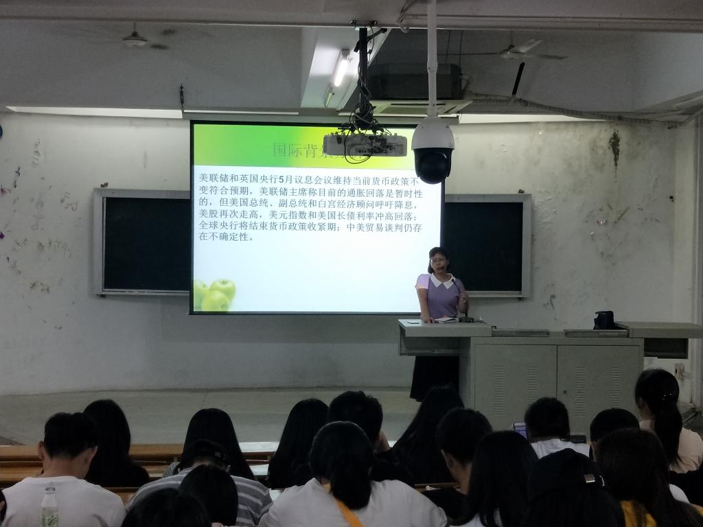 讲座由经管系金融教研室副教授、金融管理专业带头人衷凤英老师主讲。衷凤英老师从“影响股票价格的宏观经济因素”、“行业分析与投资策略”、“公司分析与选股策略”3个方面介绍了股票价格基本分析的方法,并以当前热点——中美贸易争端为例进行了深入浅出的讲解,同时安排互动环节,热情回答了同学们在比赛过程中碰到种种难题,赢得了在场所有学生的热烈欢迎。