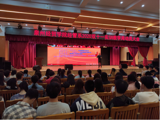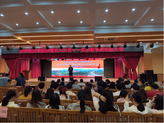 为促进人才培养内涵建设,提高同学们的应用能力,让学生明确实训的目的、意义,引导学生积极参与实训工作,我系于2020年10月26日在学院大礼堂召开实训周动员大会。大会由管理系主任张庆武老师主持,校企合作方福建安踏物流信息科技有限公司王年顺经理、揭业强经理,物流191、192、193,连锁191学生参加了此次大会。