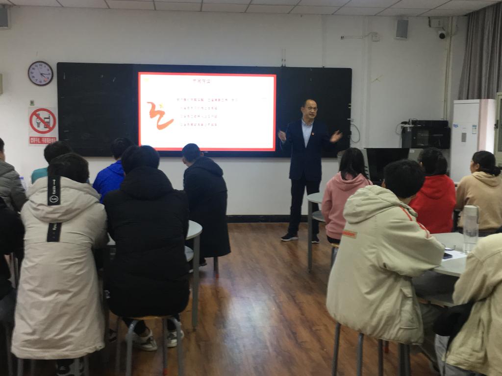 12月23日下午,学院党委委员、赖东升副院长走进思政课堂,为学生上了一堂生动精彩的思政课,辅导员代表和物流191班学生一同聆听了专题讲授。