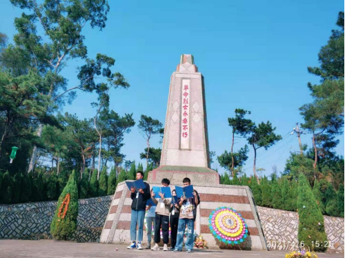 2021年4月6日,管理系组织130名师生代表前往泉州市宿燕寺烈士陵园开展“学党史、悟思想、勇担当、开新局”主题教育活动。清明之际,师生们在烈士墓碑前敬献鲜花、诵读党史诗篇。老师用英烈事迹教育、激励今天的青年大学生们,引导和帮助他们树立坚定的理想信念,争当好红色基因的传承者、实践者和弘扬者。