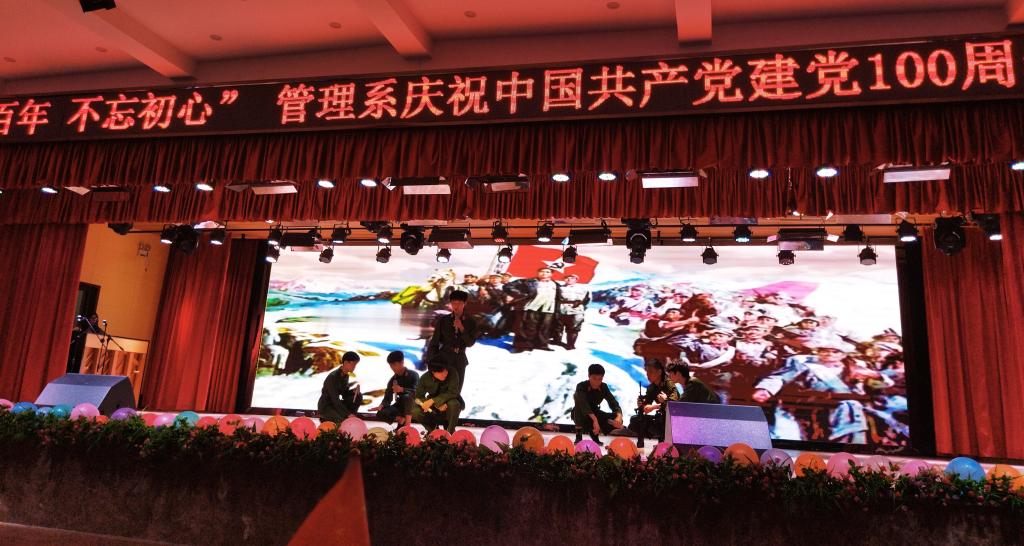 漫漫征途忆峥嵘岁月,声声嘹亮颂百年初心。6月16日晚,由管理系承办的“峥嵘百年,不忘初心”庆祝中国共产党建党100周年晚会在大礼堂隆重举行。参加本次晚会的有系主任张庆武老师,副书记熊毅老师,各辅导员及管理系全体学生。