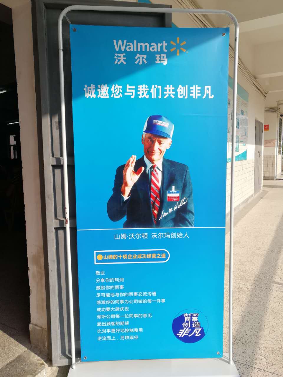 最后由泉州笋江路新店总经理王平上台跟学生们分享他在沃尔玛工作经历,简述如何从小小的店员慢慢成为总经理,并向学生们表达公司对人才的迫切需要,同时能为年满18周岁的学生提供课余兼职的机会,也表达对学生们在日后毕业实习能加入沃尔玛的期待。