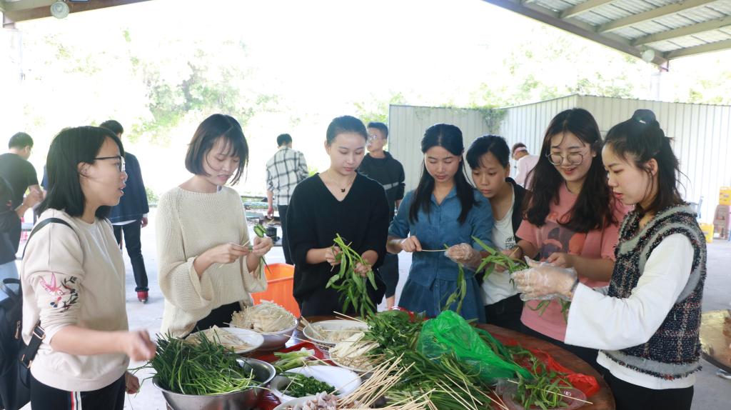 上午9:00大家准时出发前往友邦山庄,展开游园、踏青、野外烧烤等户外活动。对于这次活动,主席团及各个部长尽心尽力。他们不但精心挑选了地方,在确定会有野外烧烤这项活动后,还租了烤炉,并购买了一系列必备品。而烧烤也就成为这次的重头戏。同学们自己动手,串肉串,炭火,烧烤,调料。忙碌的过程中其乐融融。啤酒,烤肉,暂时的从学业与功课中抽身出来,从生活的浮躁里逃离出来,于是,每个人便都有了自得的快乐。谈天说地,东拉西扯。所以,才有人说,算的上偶尔的时候,只有音乐和啤酒,才可以释放我们的青春。