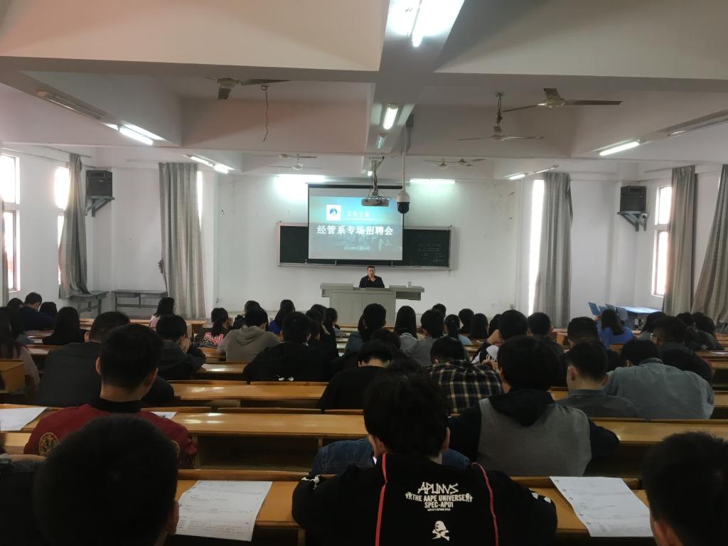 经管系于2018年11月23日下午,在东教四楼举办专场招聘会。本次招聘会有九牧王、安踏、中国人寿、招商证券等十一家企业,160名毕业生积极参加。