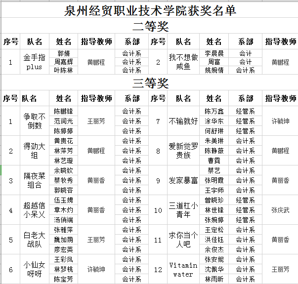 今年的挑战赛,仍然由我系代表学院组织与承办,在学院领导的关心、支持下,在我系教师及参赛选手的共同努力下,本次大赛我院在去年取得成绩的基础再获佳绩,共获得二等奖2名、三等奖12名,在全省所有高校中总获奖数第一。具体名单如下: