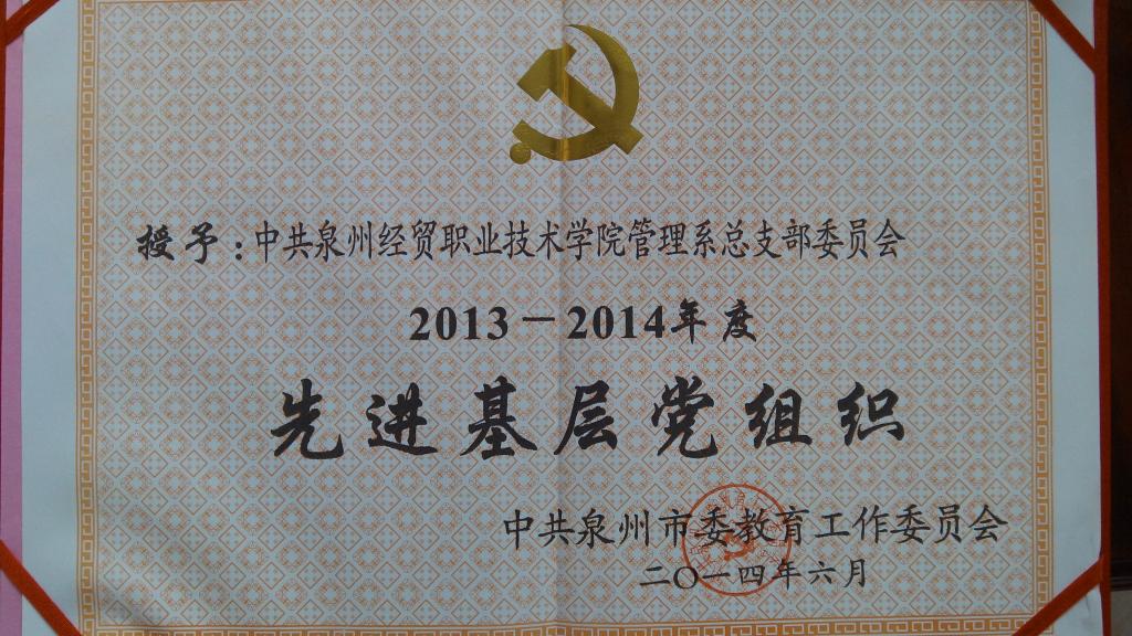 为表彰先进、弘扬正气,激励市直教育系统广大党组织、共产党员、党务工作者和高校思想政治工作者再立新功、再创佳绩。在隆重纪念中国共产党成立93周年之际,市委教育工委决定,对近年来市直教育系统涌现出来的31个先进基层党组织、50名优秀共产党员、30名优秀党务工作者和20名优秀高校思想政治工作者予以表彰。其中我系党总支获“2013-2014年度先进基层党组织”荣誉称号。
