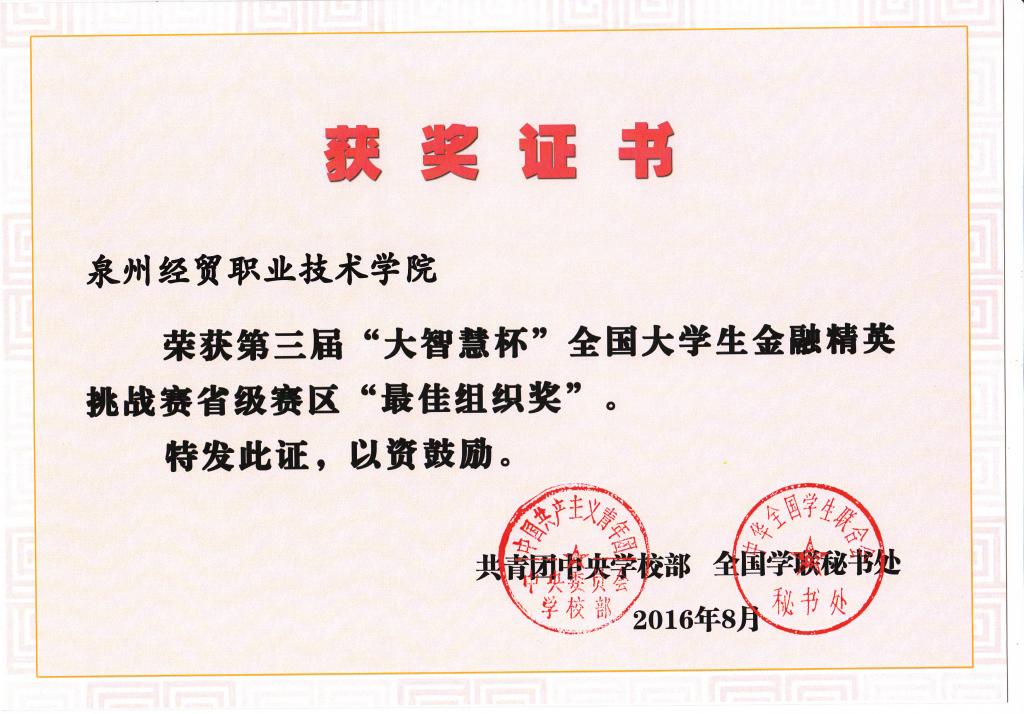 特别值得一提的是,本届大赛我院获得福建省“最佳组织学校”(福建省亚军)、全国“优秀领队奖”(福建省唯一,全国仅三十三名)。
