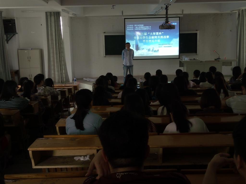 为了帮助同学们更好地掌握金融投资技术技巧,了然比赛规则与技巧,提升同学们参加证券投资模拟大赛的操作能力。2016年4月22日14:35经管系在东二梯开展第三届金融证券投资大赛赛前培训第二节讲座。本次课程由许毓坤老师授课,我系金融专业和参加本次比赛的非金融专业学生参加本次讲座。