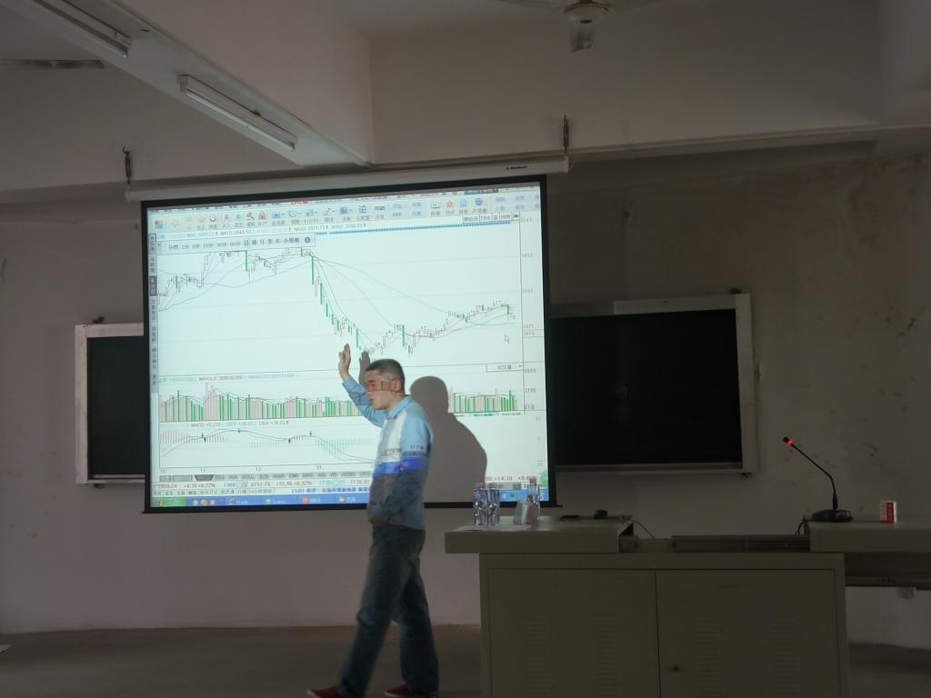 下午2:40讲座正式开始,许毓坤老师先是详细的介绍了第三届“大智慧杯”全国大学生金融精英挑战赛平台的使用规则,紧接着又告知在场同学参赛的时间、参赛流程,以便让在场众参赛同学们更心中有数的知会系统使用流程。接下来许毓坤老师针对k线技术给同学们进行了分析,k线又称日本线或蜡烛线,用以记录某一证券在每一交易时间单位(日、周、月、季和年等)内的开盘价、收盘价、最高价和最低价的一种柱状线条,并对每个时间单位的图形进行分析。把k线分为了阴、阳线,阴线代表收盘价低于开盘价,阳线代表收盘价高于开盘价,从图像中看这些线,能够展现出买方的潜在实力和卖方的力量。许毓坤老师还强调支撑线与压力线的相互转化,一条支撑线如果被跌破,那么这个支撑线将成为压力线,同理,一条压力线被跌破,这个压力线将成为支撑线。最后许毓坤老师通过均线理论让我们更进一步了解如何在正当的时机购买股票。所谓均线即平均价格,当收盘价上穿均线时买入,下穿卖出;切线出现金叉时买入,死叉卖出;均线由下跌转为上涨时买入,由上涨转为下跌时卖出;股市中,出现金银山谷(股票经整理后向上攀升时,由中短期均线,由下往上穿过长期均线后,形成尖头向上的不规范三角区。属做多信号)买入。可见技术分析可以作为把握进出时机的必要参考。