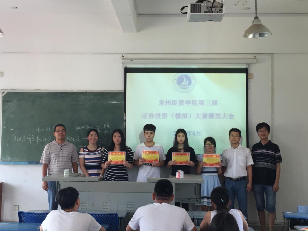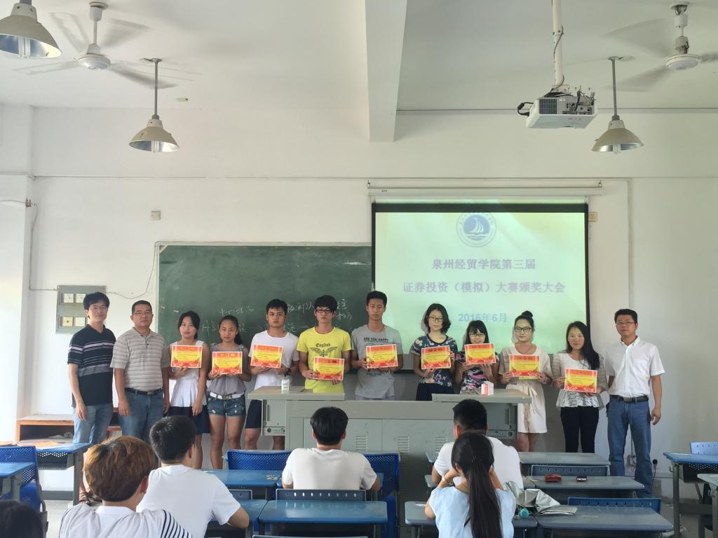 2016年6月7日下午,我系在东教406举行泉州经贸学院第三届证券投资(模拟)大赛颁奖大会,大会由系主任张庆武老师主持,大赛指导老师黄鹏程老师和王丽芳老师共同出席,我系特邀学院团委书记张永辉老师作为颁奖嘉宾。