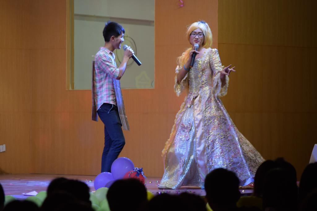 熊键炜同学的大提琴独奏《船歌》,着重于内心刻画,表情细腻。创业部的同学们为大家带来的热情奔放的哑剧《黄河大合唱》,表情夸张,行动到位。新闻部的小品《白雪公主》人物的反串,跌宕起伏的情节逗乐了现场的所有观众,赢得了掌声与肯定。为了带动气氛,晚会的现场还特别安排了抽奖环节。