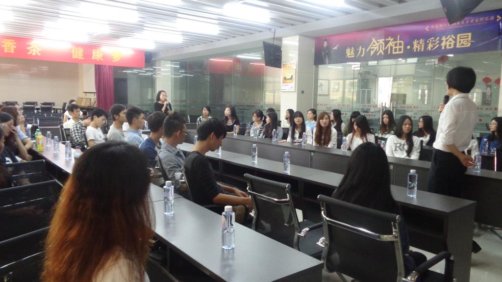 本次的活动分为两个议程,一是去裕园茶业公司总部参观了解;二是到实体店进行参观。在总公司里,裕园茶业人力服务中心陈樱经理首先介绍了企业的文化背景,他们秉承“同愿、同创、同享”的理念,吸收大学生加入他们的团队。公司员工主要由80、90后的团队组成,平均年龄27.83,是一只充满活力的团队。陈经理介绍了公司的用人计划主要是储备培训师和管理培训生,同时详细介绍公司待遇福利,晋升空间及创业基金等。