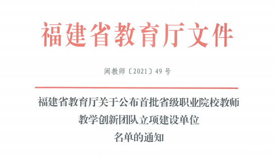 近日,福建省教育厅下发《福建省教育厅关于公布首批省级职业院校教师教学创新团队立项建设单位名单的通知》闽教师〔2021〕49号,我院熊毅教授团队负责的电子商务专业群成功入选,团队成员有黄敬前院长、李英伟、赖东升、潘茹、吴国胜、张庆武、王欣、洪海玲、吴岚萍、庄阿苗、赵思思、肖成、许文远、黄晓峰等教师。