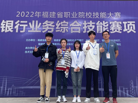 2021年12月11日至12日,2022年福建省职业院校技能大赛“银行业务综合技能”赛项在福建省厦门市举办,本次比赛高职组共有省内24所高职院校派队参赛。经过一天半的激烈角逐,我院管理系王丽芳、刘凯老师指导的朱德军、兰楠、刘泽宇和叶艳兰四位学子组成的代表队脱颖而出,荣获“银行业务综合技能”赛项高职组二等奖。这是我院在该赛项中取得的最好成绩,也是今年泉州高职院校取得的最好名次。