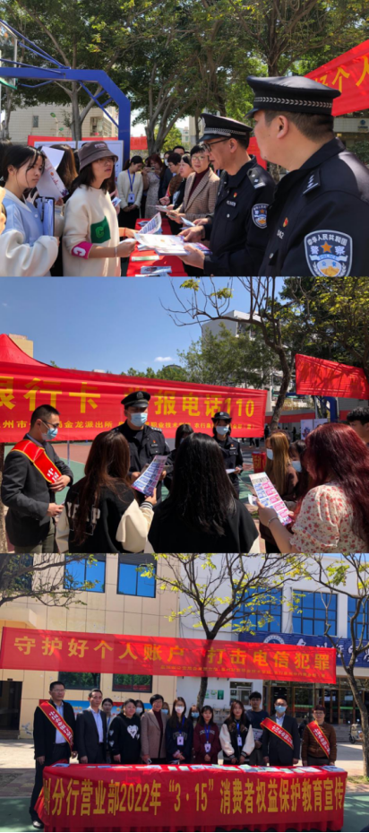 为加强在校大学生消费者维权意识,学院联合中国农业银行泉州分行营业部、泉州市公安局金龙派出所于3月10日在校园内开展“断卡行动”及2022年“3·15消费者权益保护”教育宣传活动。学院党委委员、副院长花文苍,中国农业银行泉州分行高级专员李海翎,金龙派出所陈俊腾警官,金融协会指导教师及骨干学生参加了本次活动。