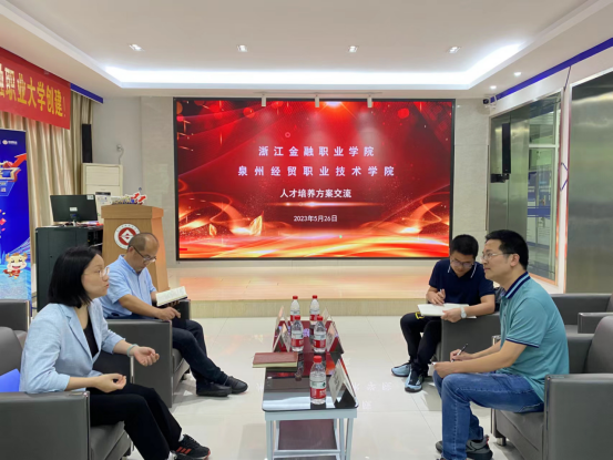 在浙江金融职业技术学院,黄鹏程一行参观了该校投资者教育基地,并与该校投保学院副院长裘晓飞及严卫华老师就如何加强高职院校间的交流合作、加强财富管理专业人才培养工作及提升社会服务水平等方面进行了深入的探讨和交流。